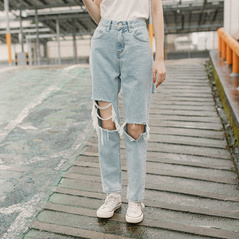前後不規則刷破造型牛仔褲 S/M/L