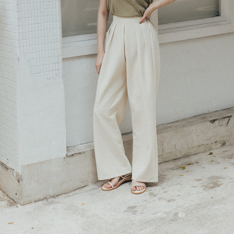 簡約素色打褶設計寬褲 兩色售