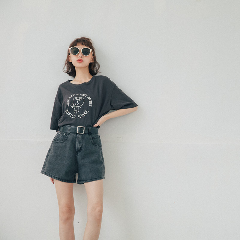 皮帶高腰牛仔短褲 兩色售 S/M/L/XL