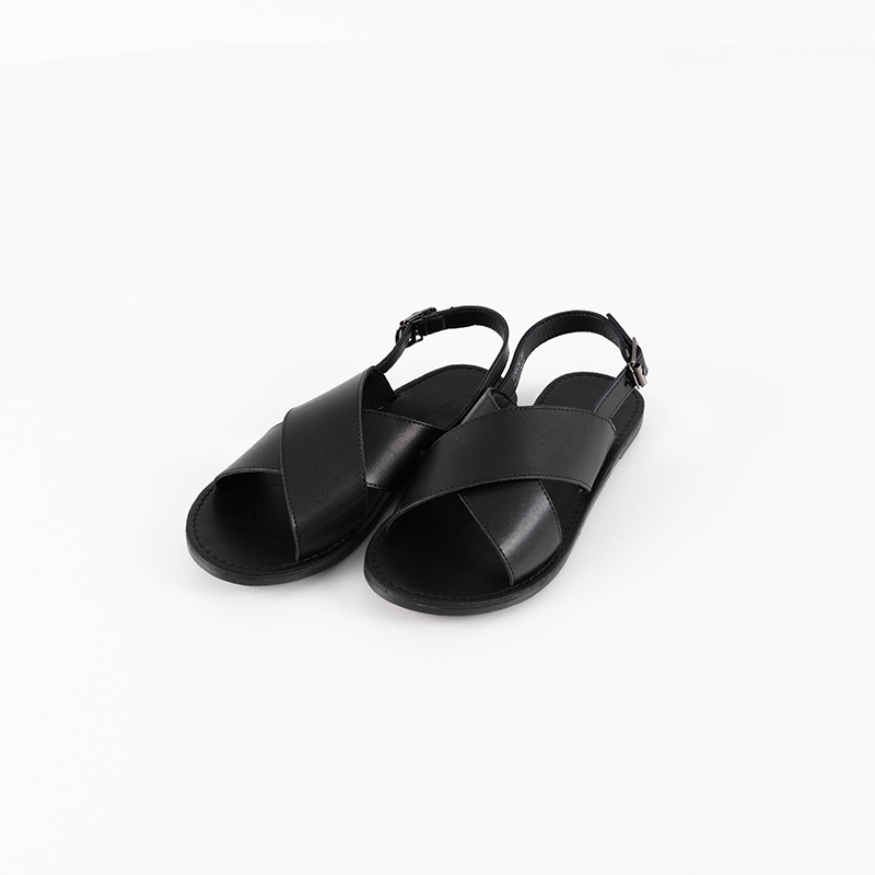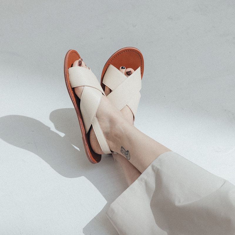 素色寬版皮革交叉涼鞋 三色售 36~40