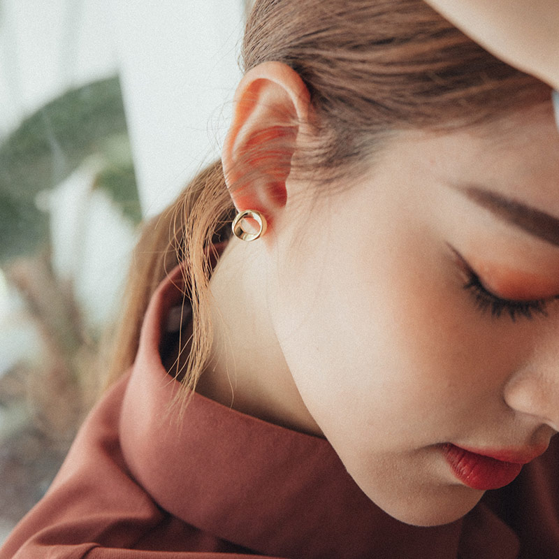 環形線條扭轉造型耳環 兩色售