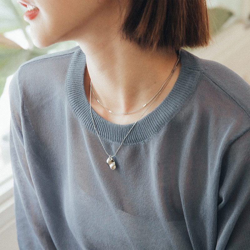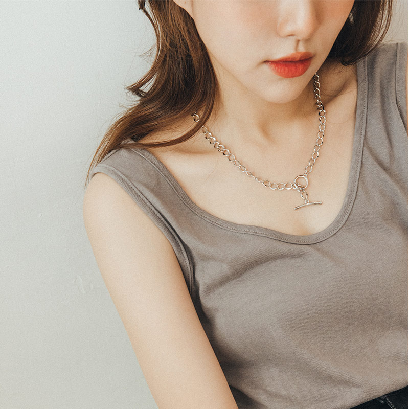 橫條扣環造型銀項鍊