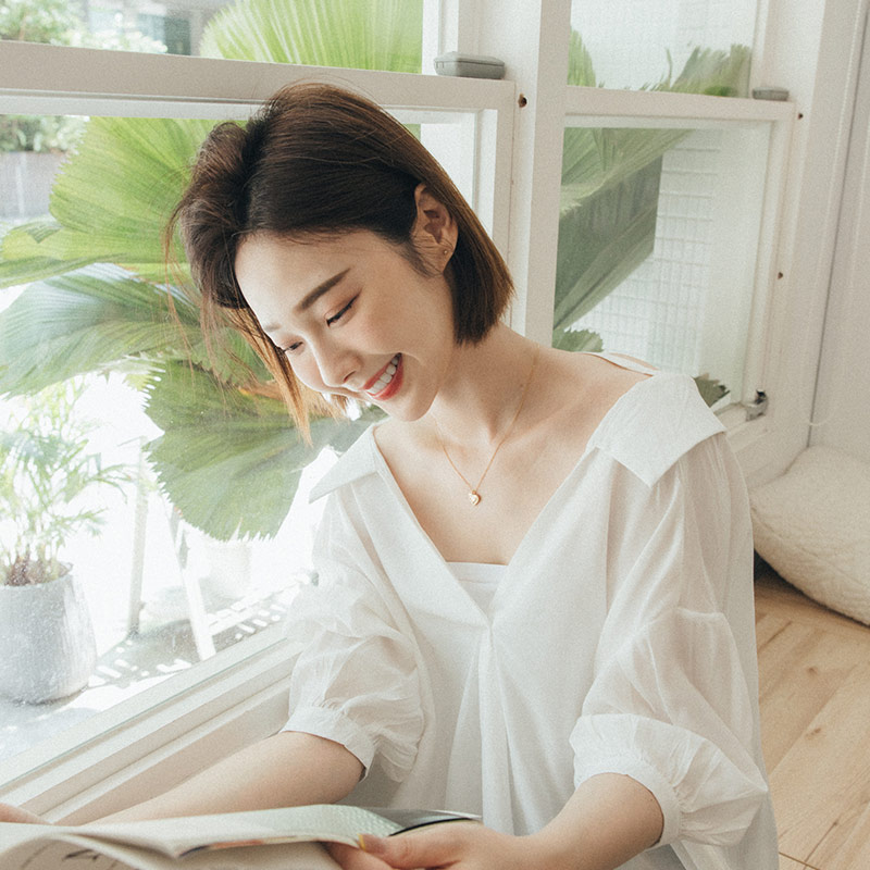素面後排釦造型寬版上衣