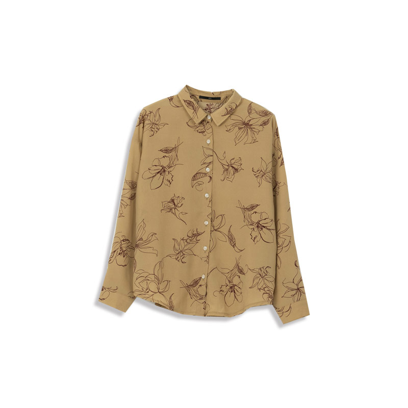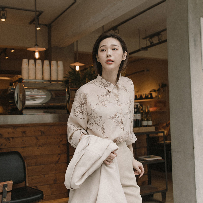 手繪線條花朵雪紡長袖襯衫 兩色售