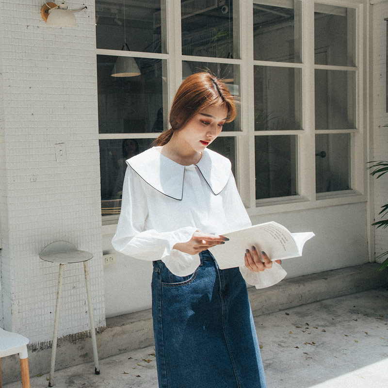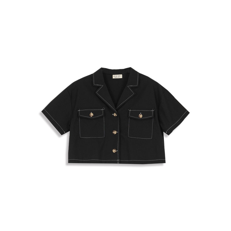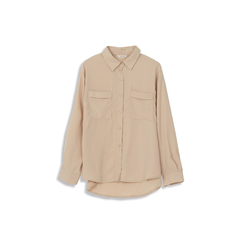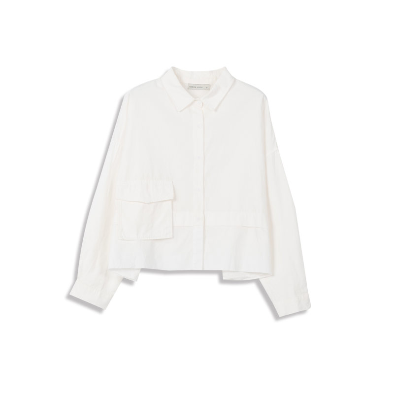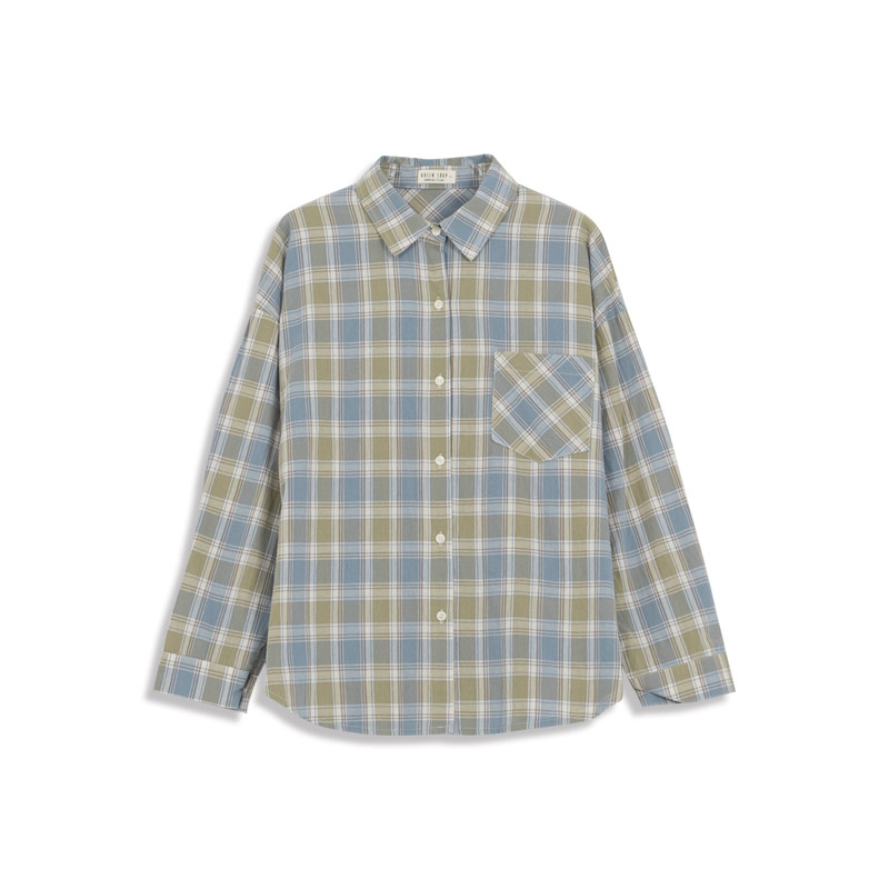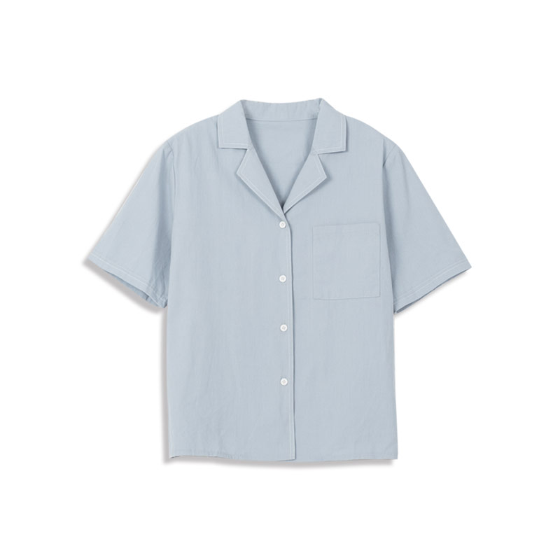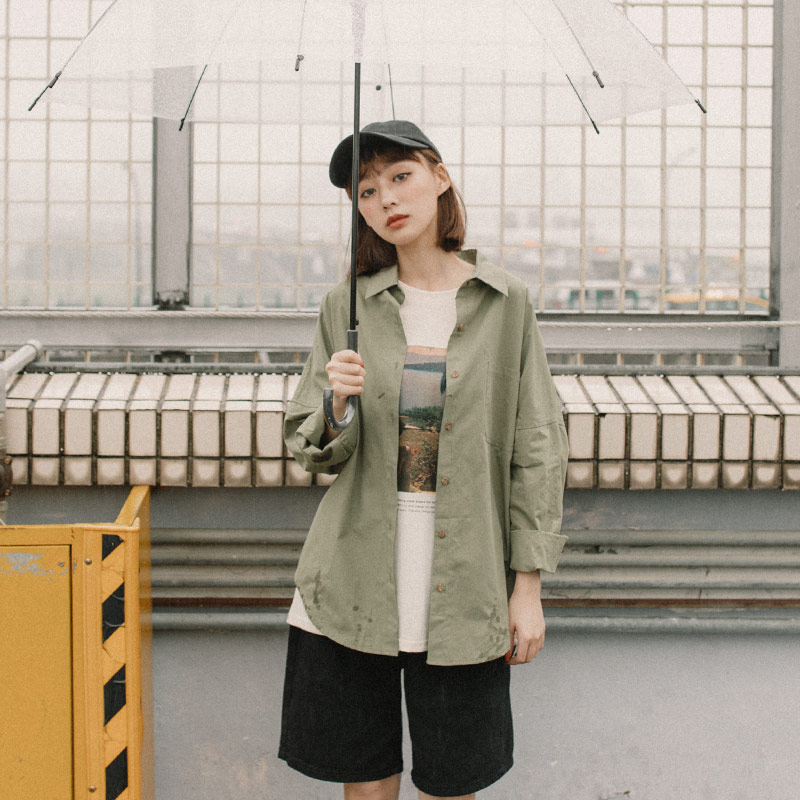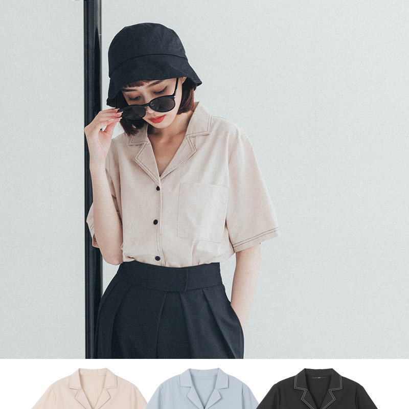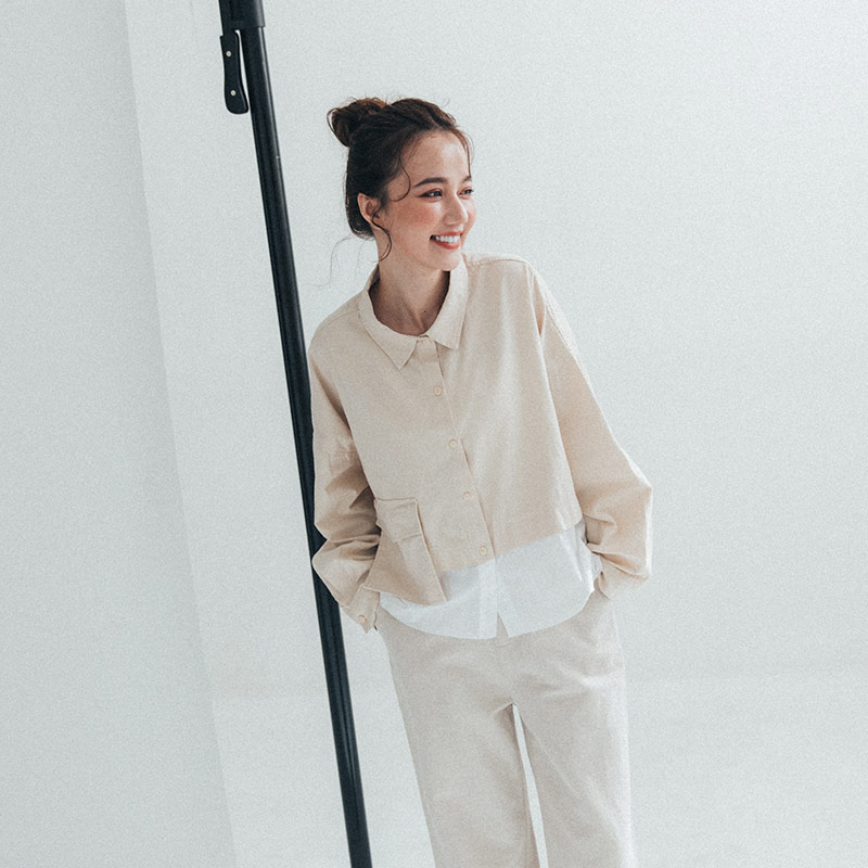 撞色車線單口袋素面襯衫 三色售 S/M/L