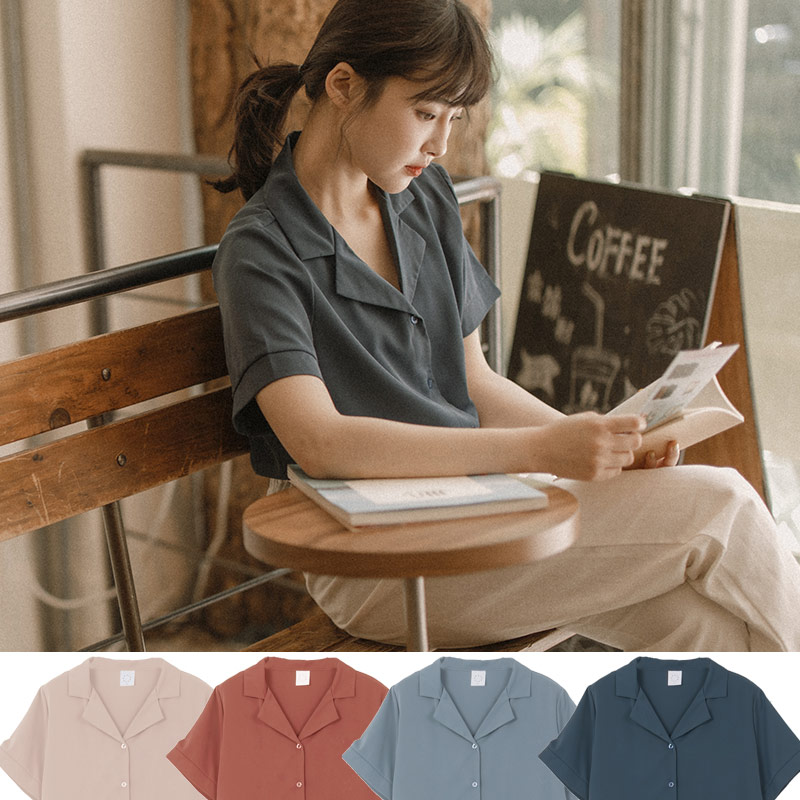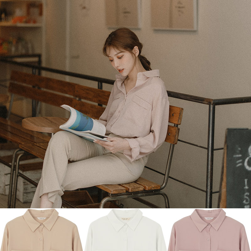 睡衣領排釦柔軟雪紡襯衫 四色售
