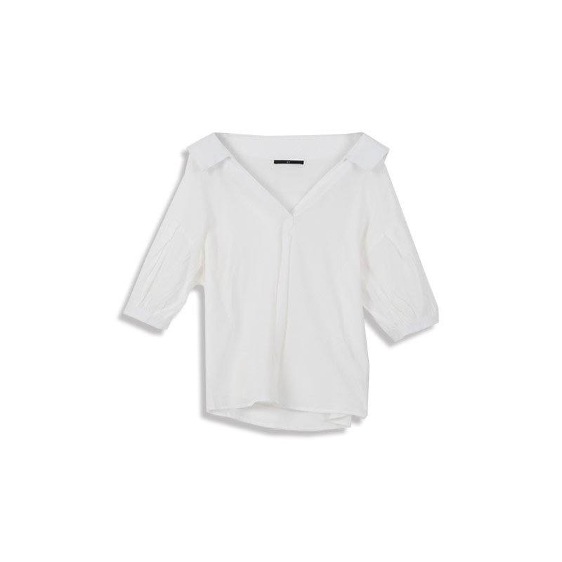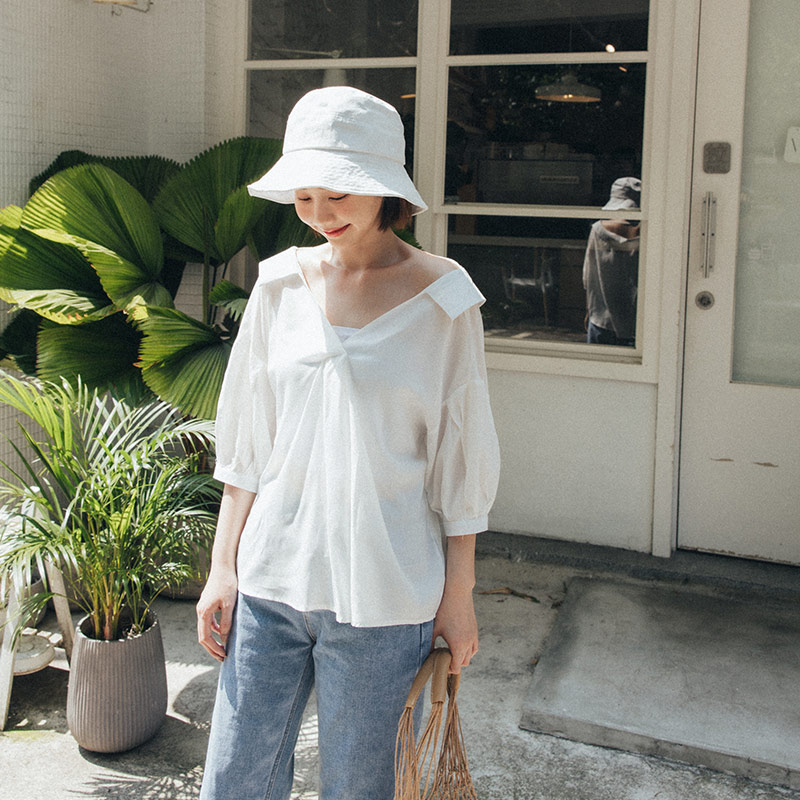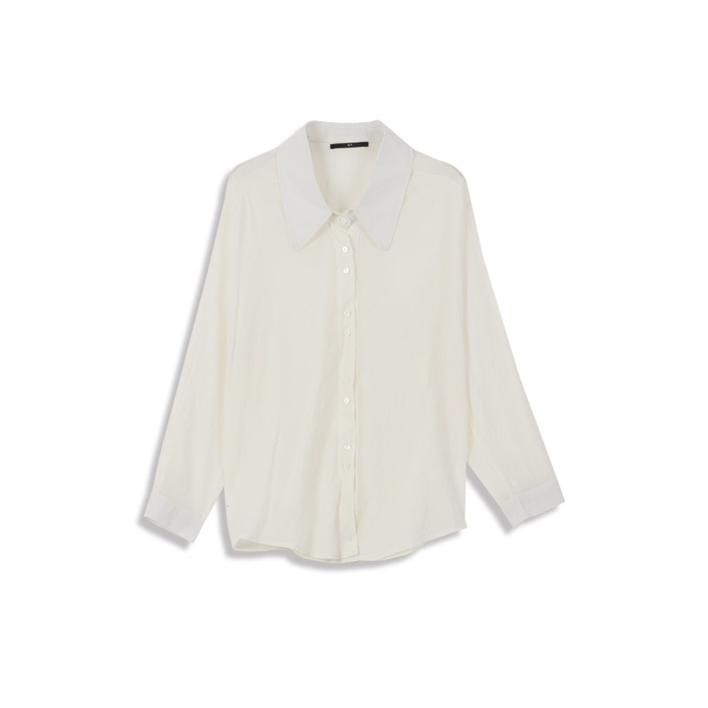 泡泡袖落肩設計透膚雪紡襯衫 四色售