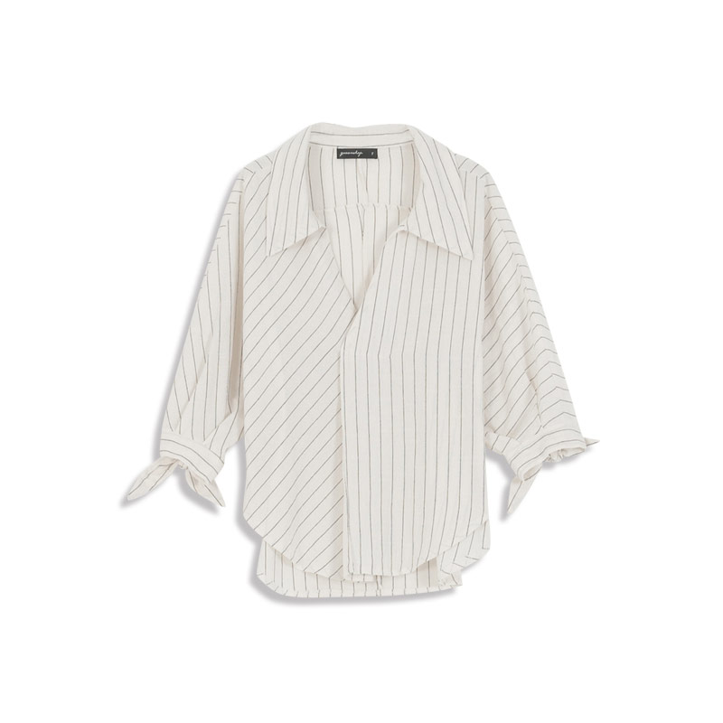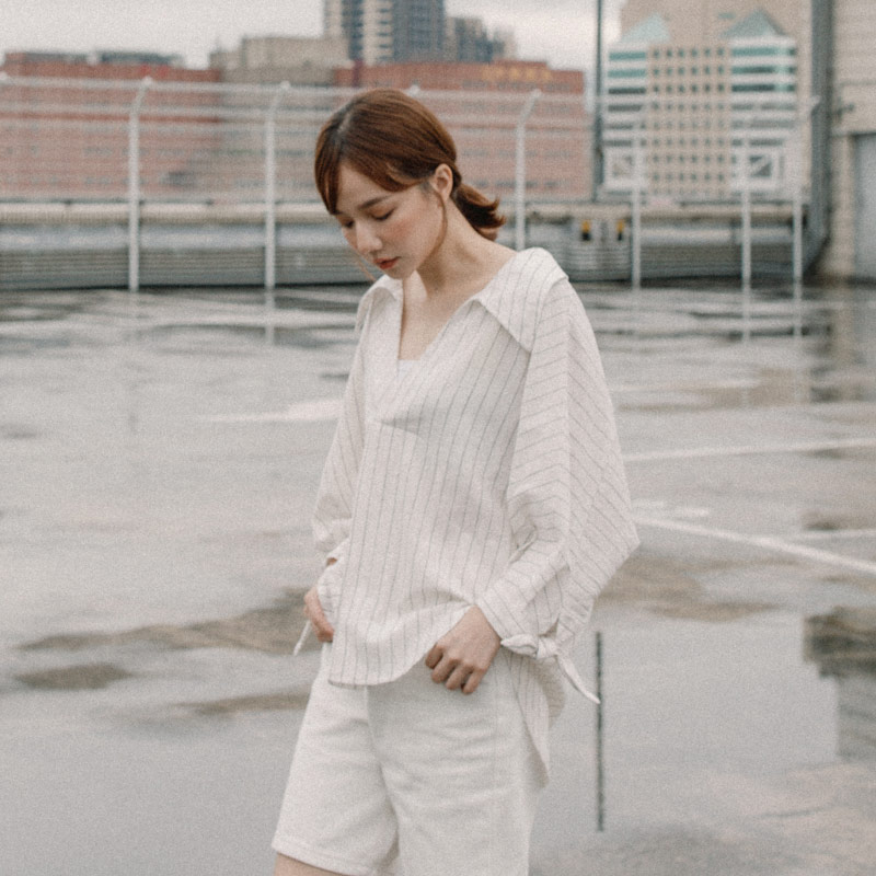 不對稱剪接下擺條紋無袖上衣 兩色售
