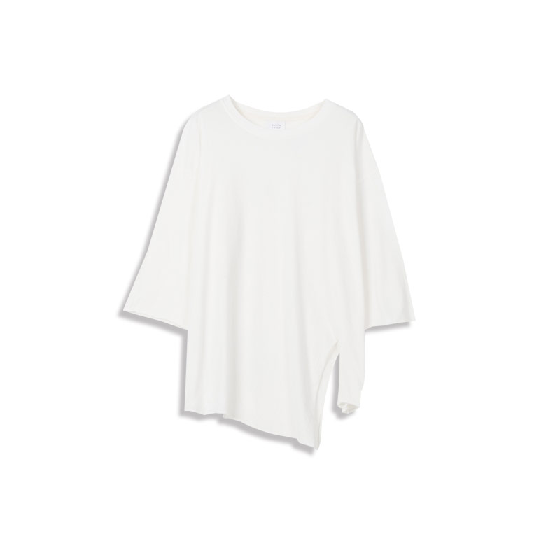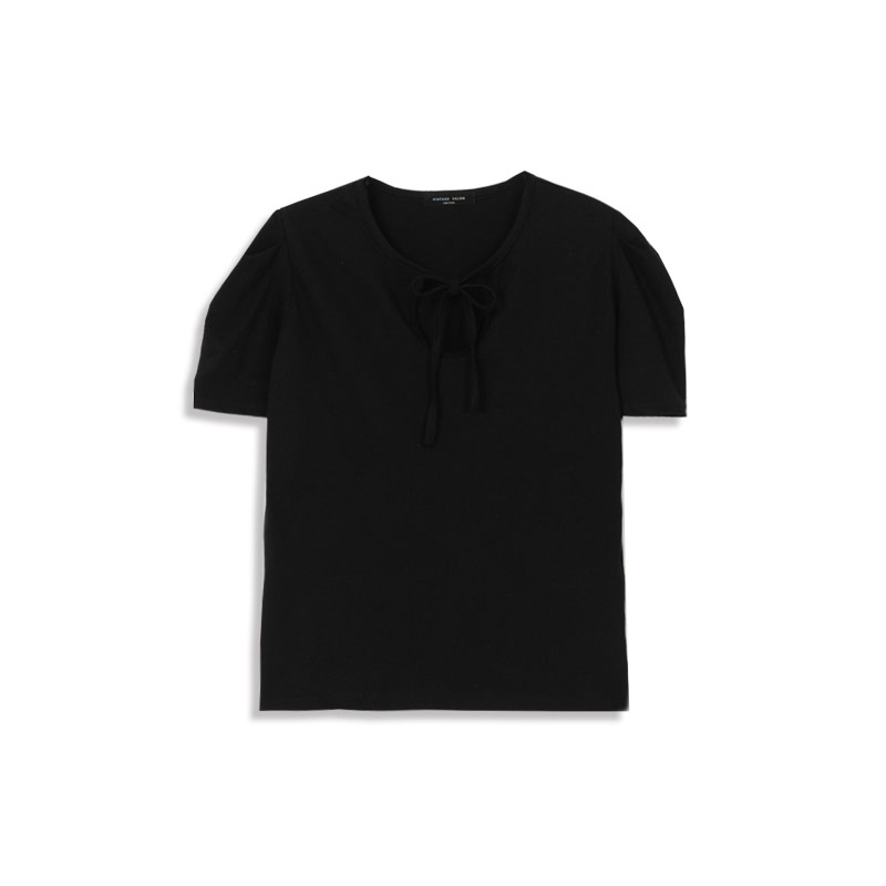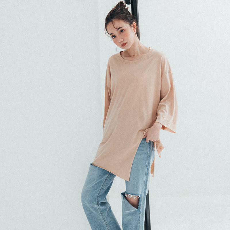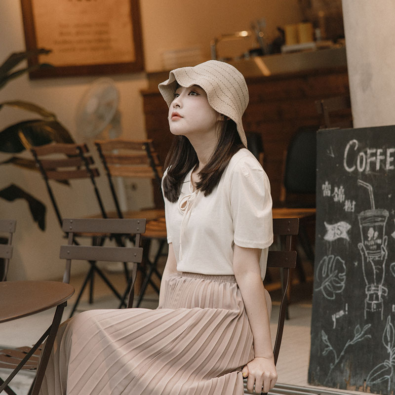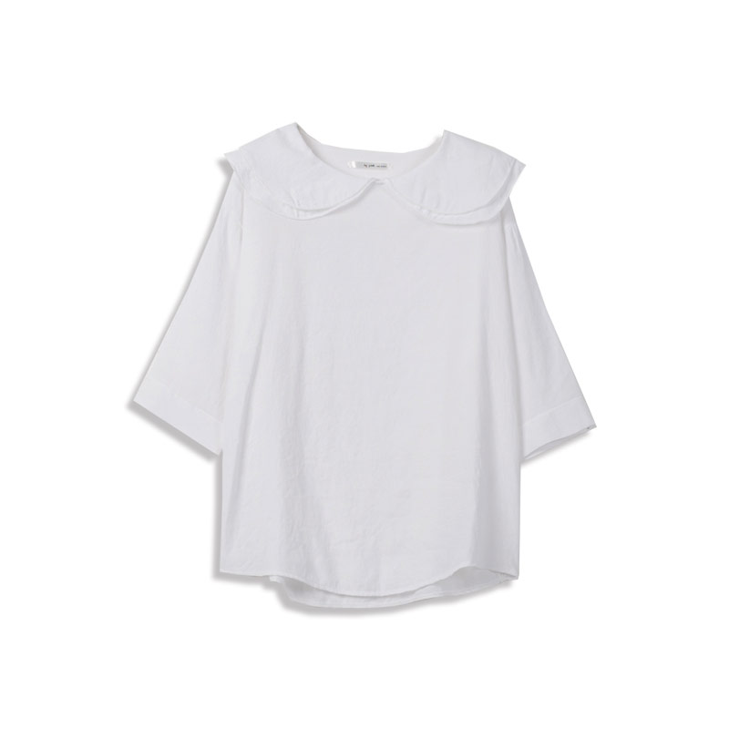 抓皺荷葉袖造型圓領素面棉麻上衣 兩色售