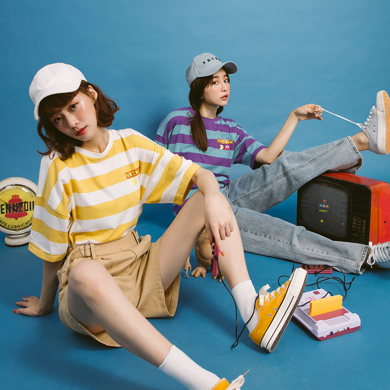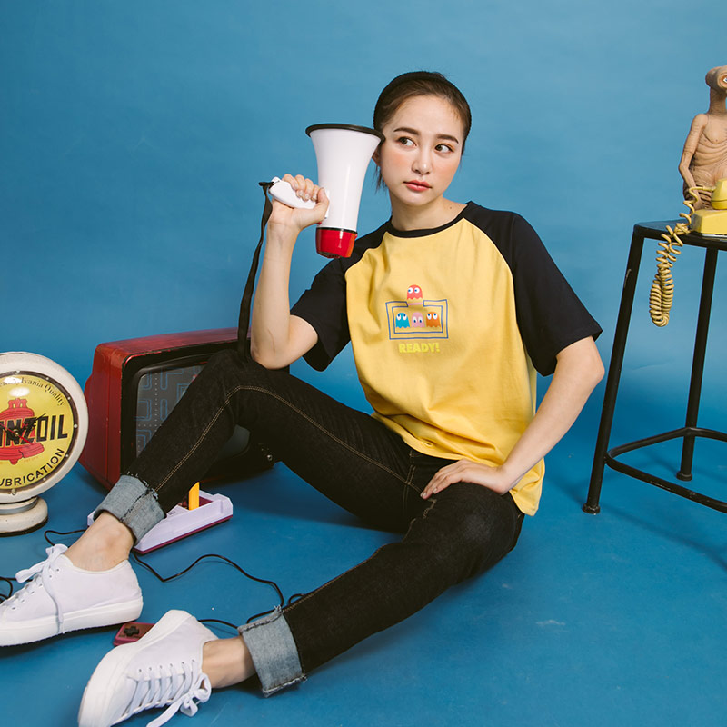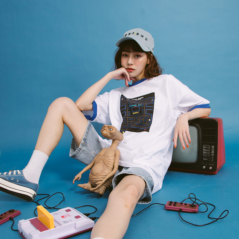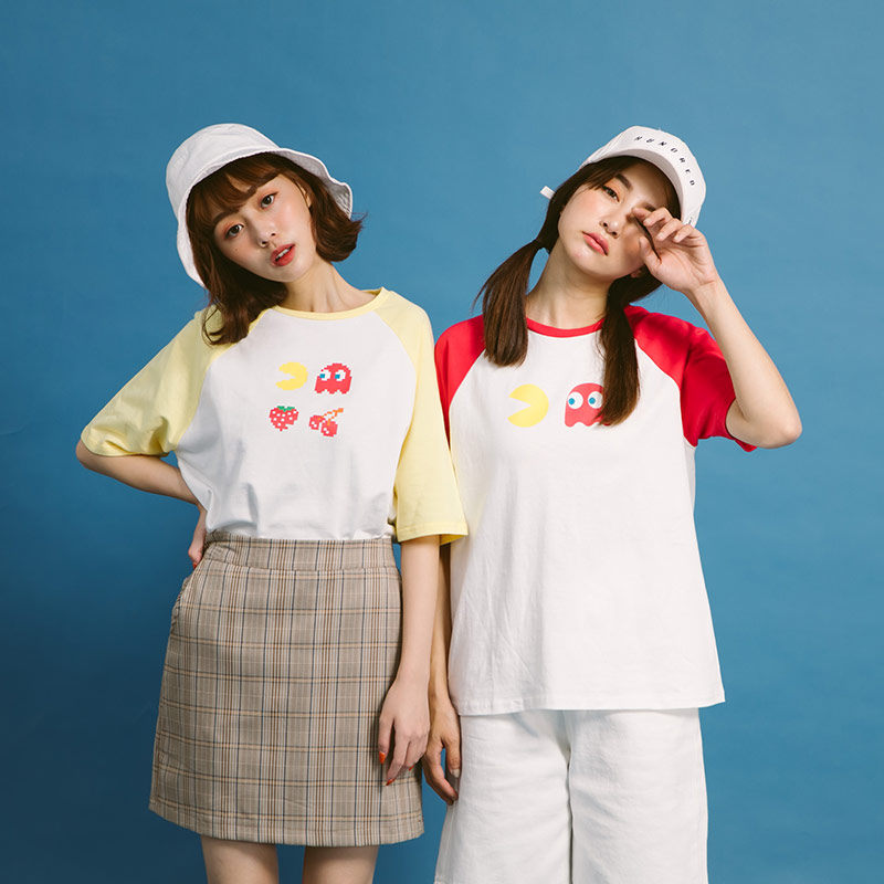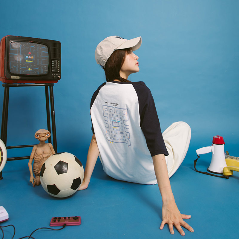 小精靈後印圖迷宮圖案棒球袖短T S/M/L