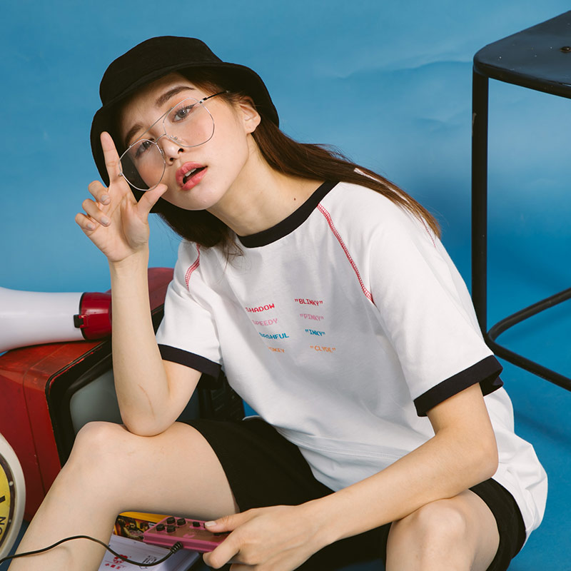 MIT小精靈繡花撞色滾邊TEE 兩色售