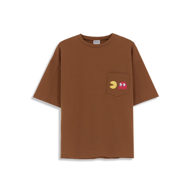 小精靈單口袋印圖寬鬆咖啡色TEE